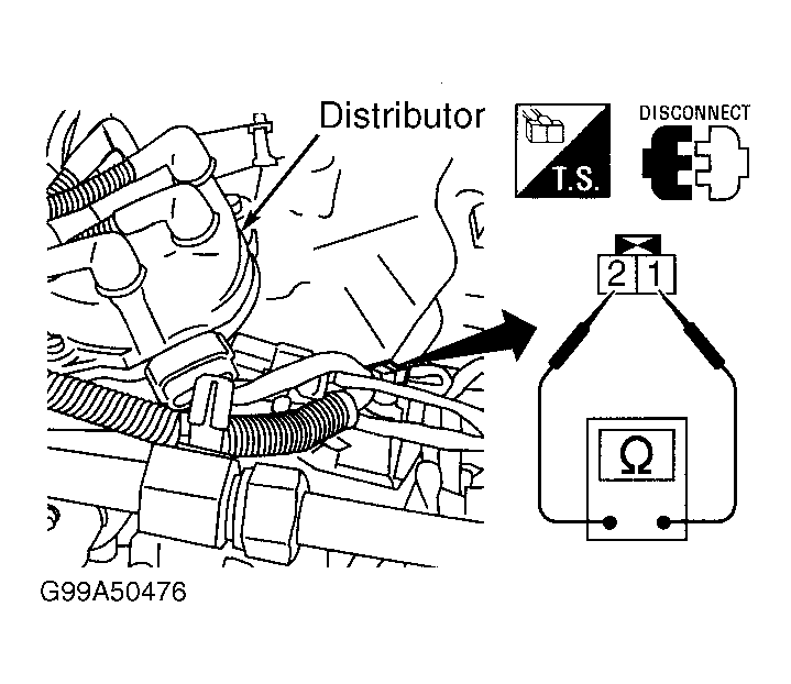 8. Check ignition coil. See IGNITION COIL . If ignition coil tests okay, go to next step. If ignition coil does not test okay, replace distributor assembly.