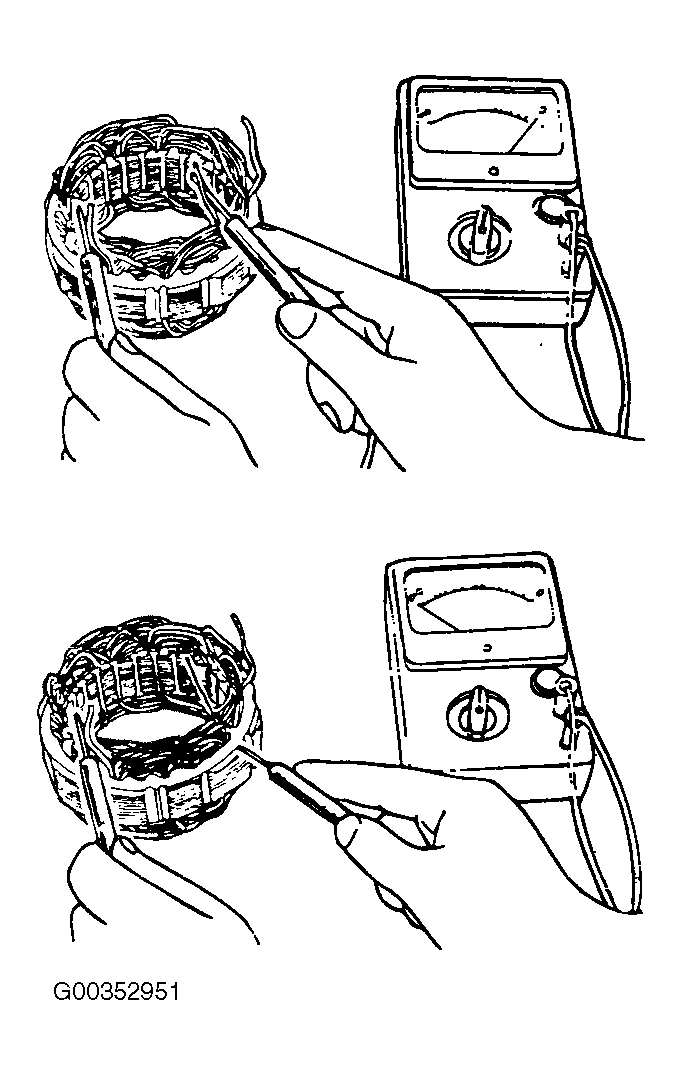 2. Check the continuity between the coil and the core. If there is continuity replace the stator. See Fig 1 .