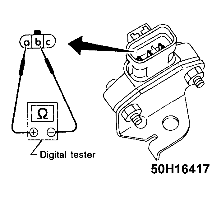 Disconnect power transistor harness connector. Check continuity between terminals with a digital tester. See Fig 1