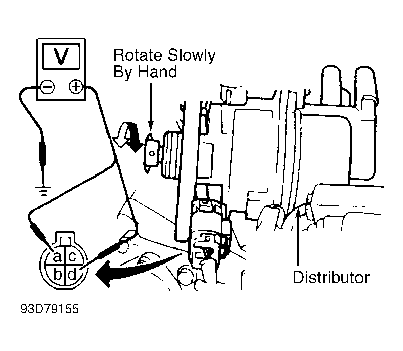 - Measure voltages at both terminals while rotating distributor by hand. Voltage should fluctuate 0-5 volts. If either voltage signal does not fluctuate 0-5 volts, check harness for short or open circuit. If no problems are found, replace CKP sensor.