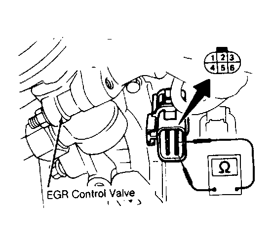 Check resistance between terminals No. 1 and 2; 2 and 3; 4 and 5; and 5 and 6 of AAC valve connector. See Fig 1 . If resistance is not 27-40 ohms at 68°F (20°C), replace AAC valve.