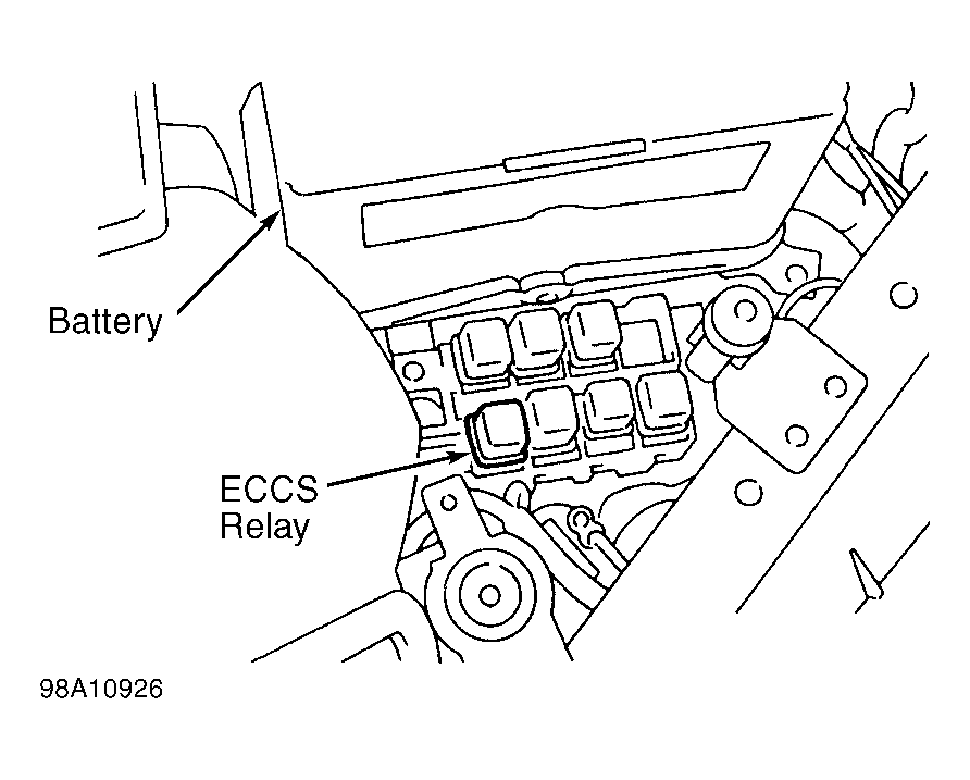 7. Check ECCS relay. See RELAYS  under RELAYS & SOLENOIDS. If continuity is as specified, go to next step. If continuity is not as specified, replace ECCS relay and retest system.