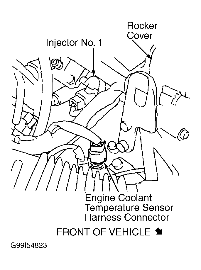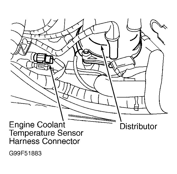 - Turn ignition off. Disconnect ECT sensor harness connector. See Fig 1