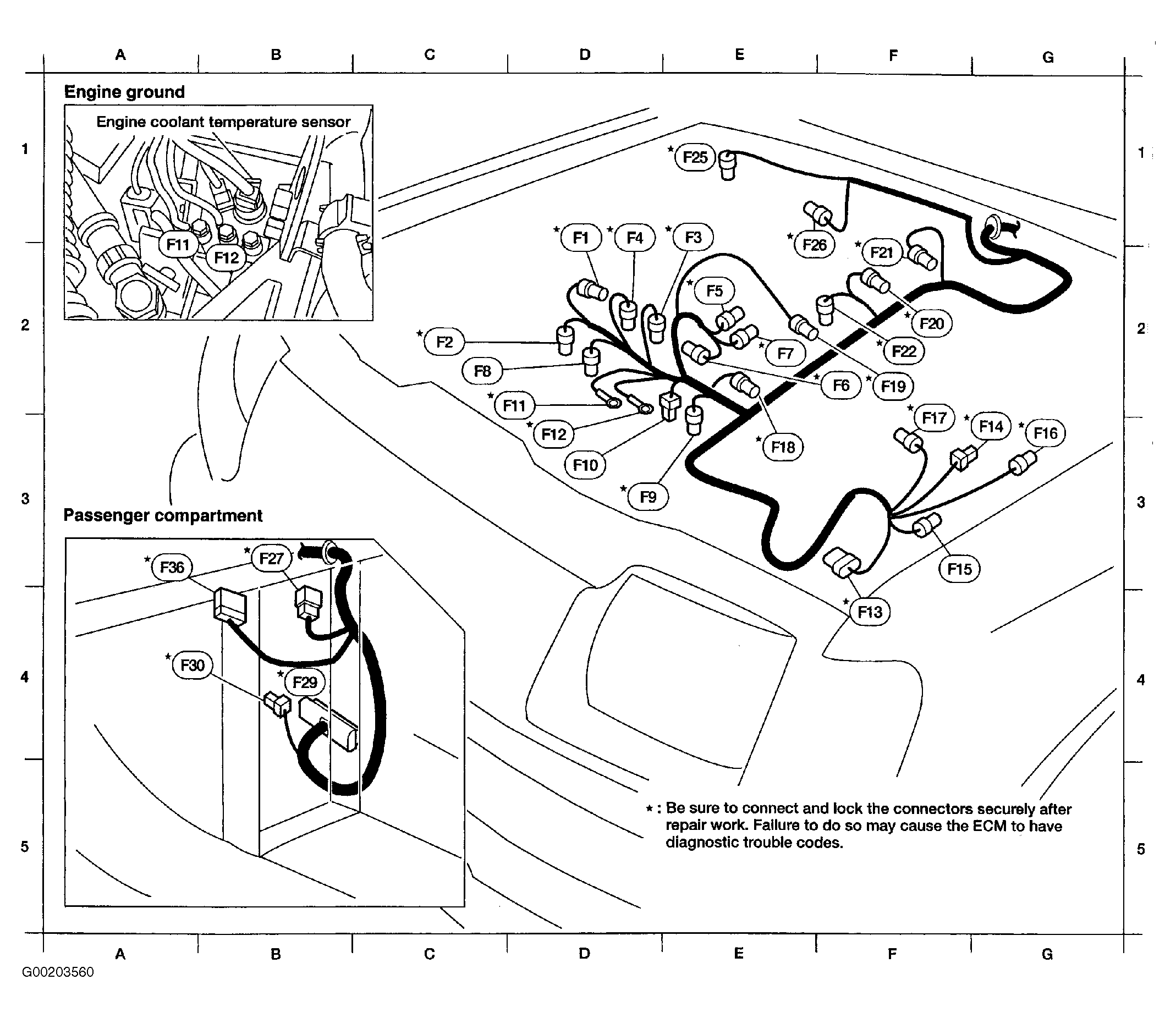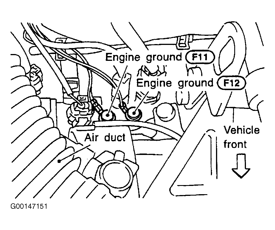 - Turn ignition off. Loosen and retighten engine ground bolts. See Figure .