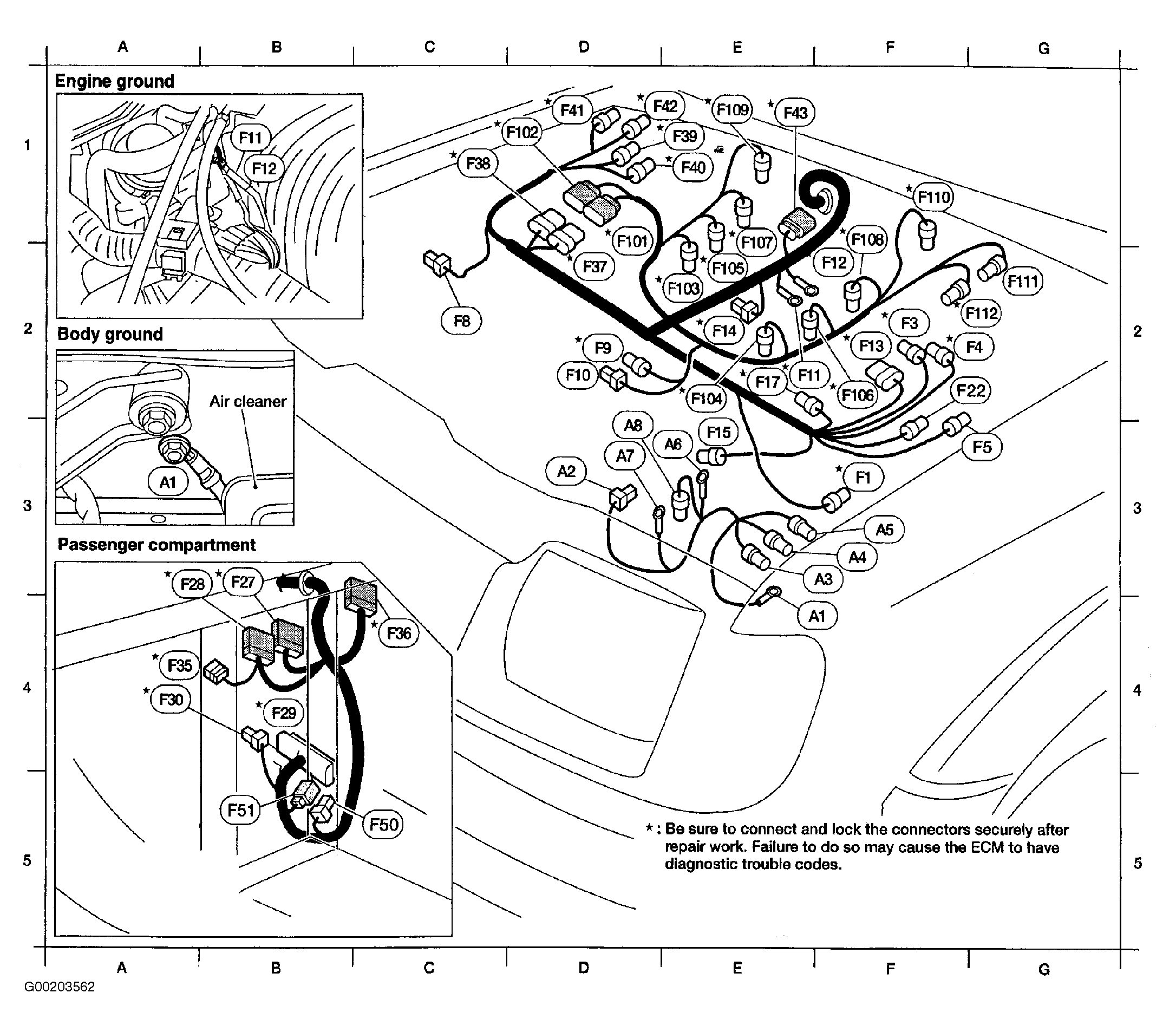 - Loosen and retighten engine ground bolts. See Figure . Go to next step.
