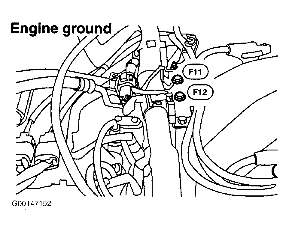 2. Turn ignition off. Loosen and retighten engine ground bolts. See Figure . Disconnect EVAP-CSPS harness connector. Check connector for water. If water exists, repair or replace harness connector as necessary. If water does not exist, go to next step.
