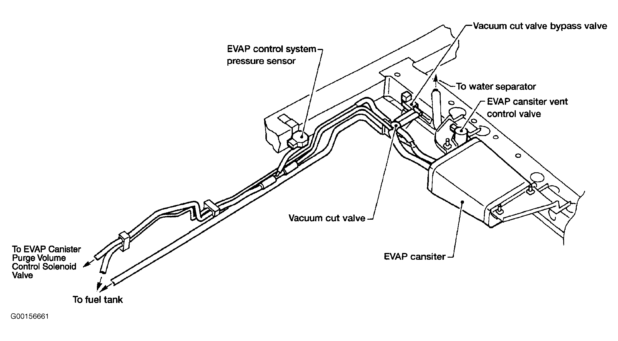 21. Inspect EVAP canister for damage. Replace, if necessary. Also, check hose between water separator and EVAP canister for blockage or poor connection. If problem is found, repair as necessary. If problem is not found, go to next step.