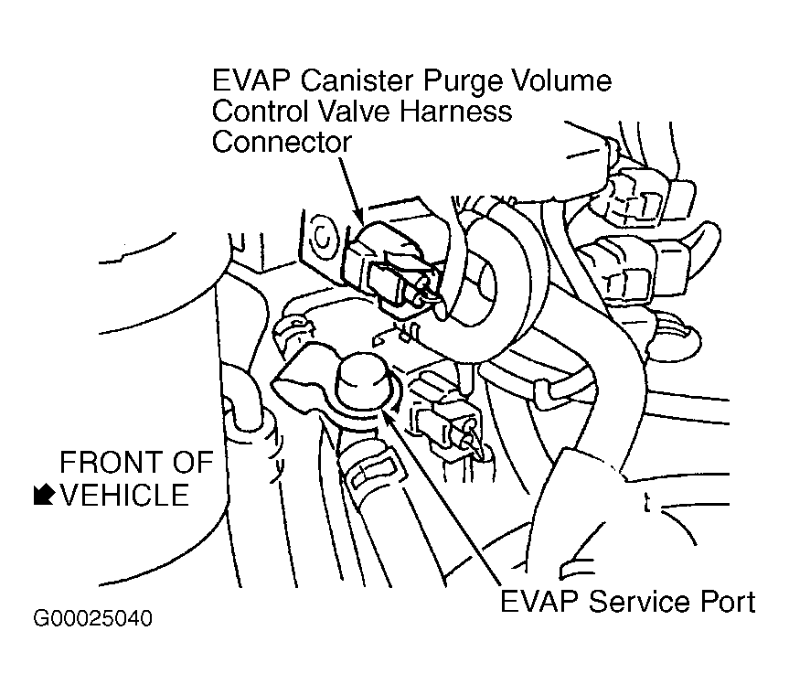 CAUTION: To avoid damage to EVAP system, do not use compressed air. Do not start engine. Do not exceed 0.6 psi (4.12 kPa).