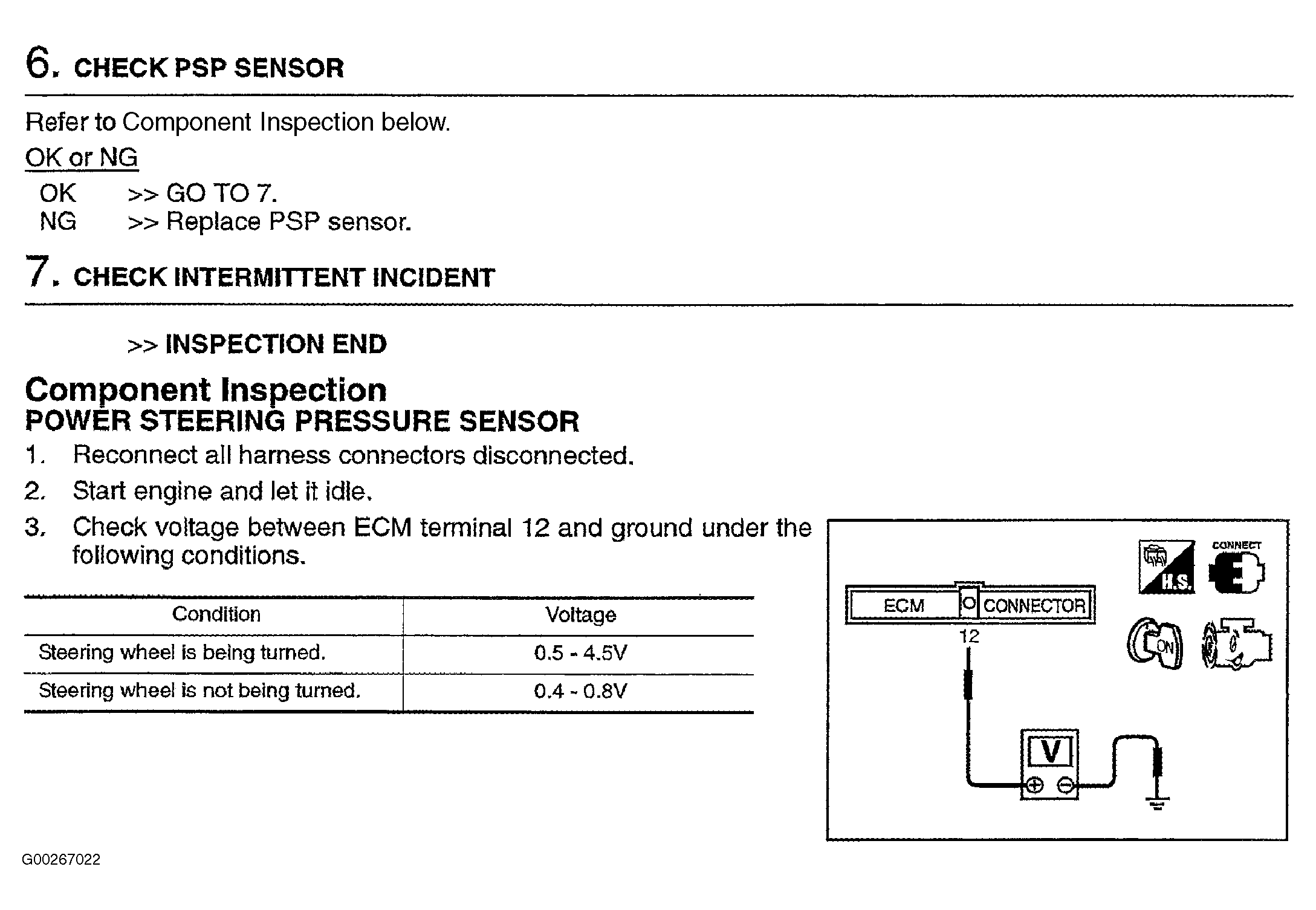 For test and diagnosis of power steering pressure switch, see Fig 1-Fig 3 . For locating power steering pressure switch and circuit wiring diagram, see Figure-Fig 4 . If no problem is indicated at this time, problem may be intermittent. See INTERMITTENTS in TROUBLE SHOOTING - NO CODES article. For removal and replacement procedures, see appropriate REMOVAL & INSTALLATION article.