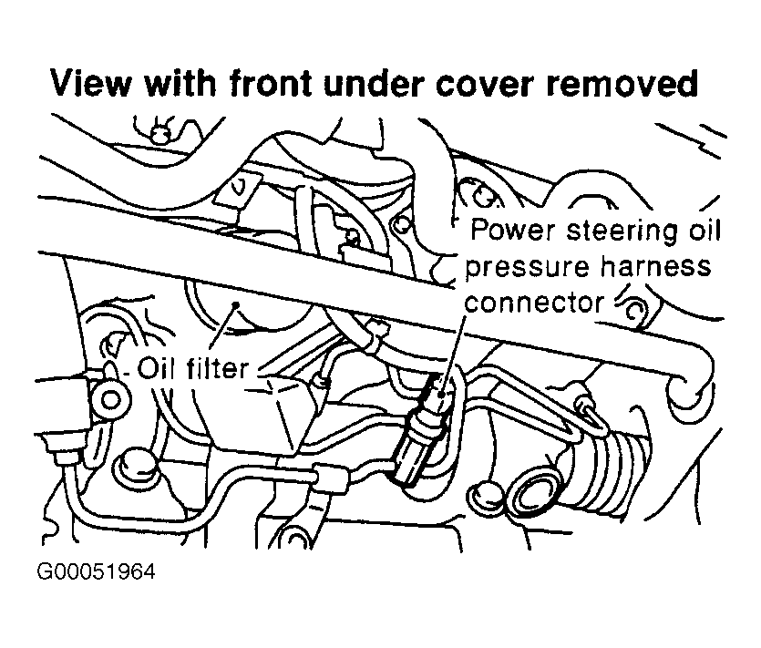 For test and diagnosis of power steering pressure switch, see Fig 1-Fig 3 . For locating power steering pressure switch and circuit wiring diagram, see Figure-Fig 4 . If no problem is indicated at this time, problem may be intermittent. See INTERMITTENTS in TROUBLE SHOOTING - NO CODES article. For removal and replacement procedures, see appropriate REMOVAL & INSTALLATION article.