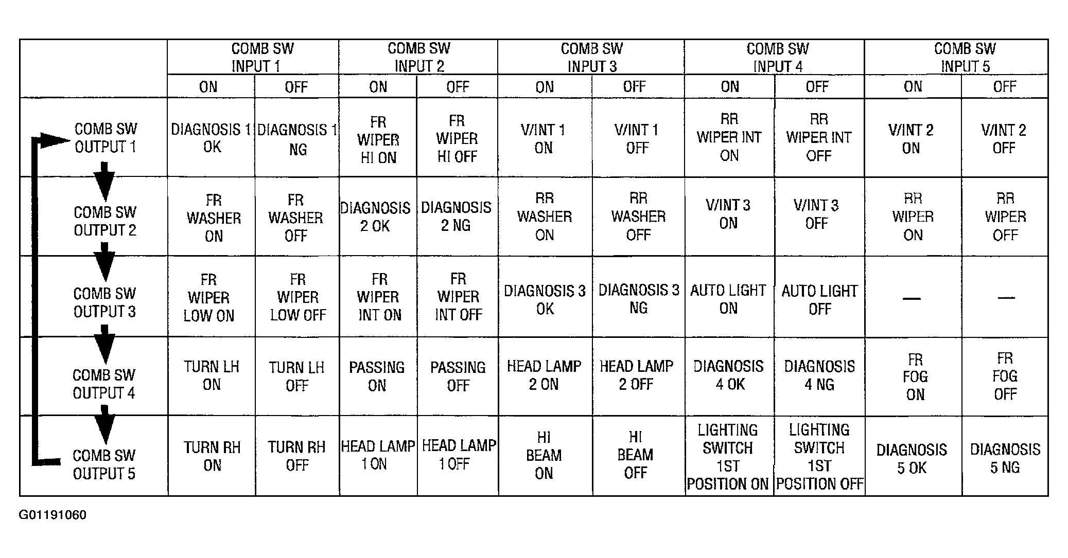 Fig 1: Combination Switch Reading Chart