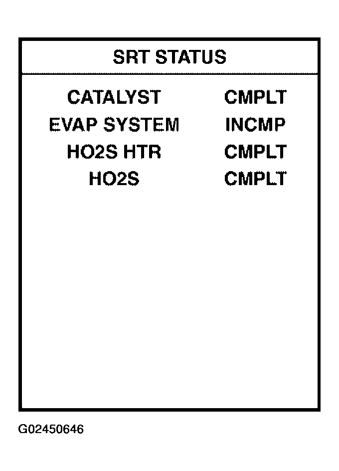 For items whose SRT codes are set, a "CMPLT" is displayed on the CONSULT-II screen; for items whose SRT codes are not set, "INCMP" is displayed.