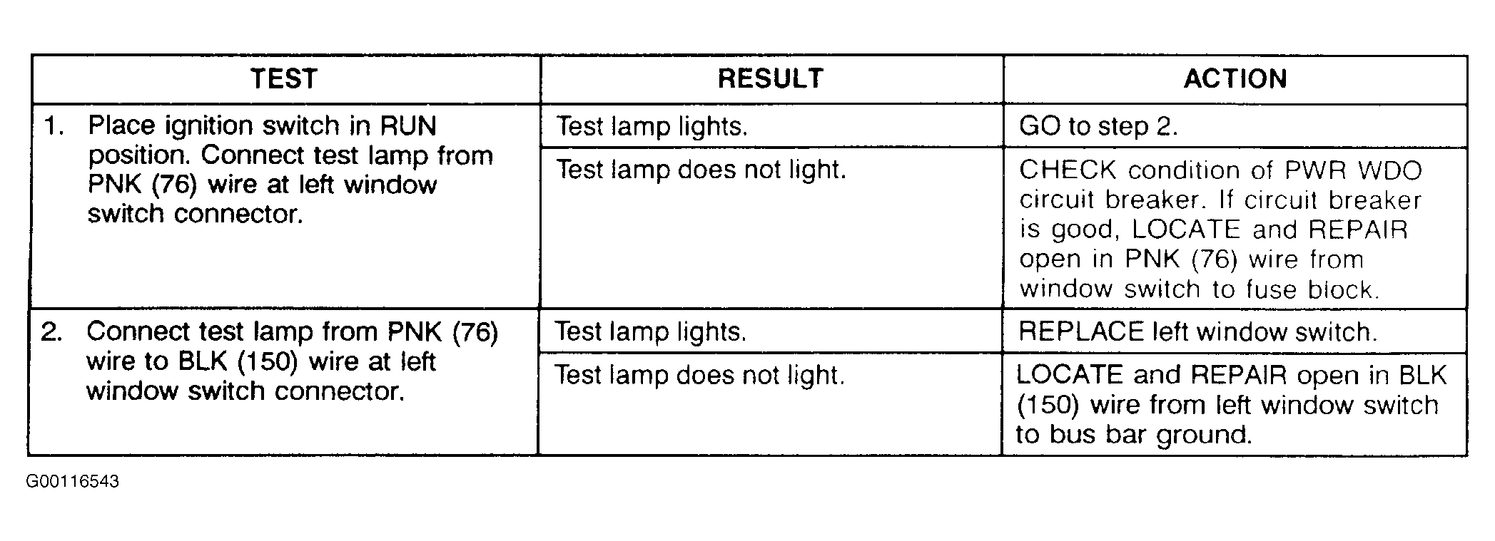 Test A: Power Windows Do Not Operate