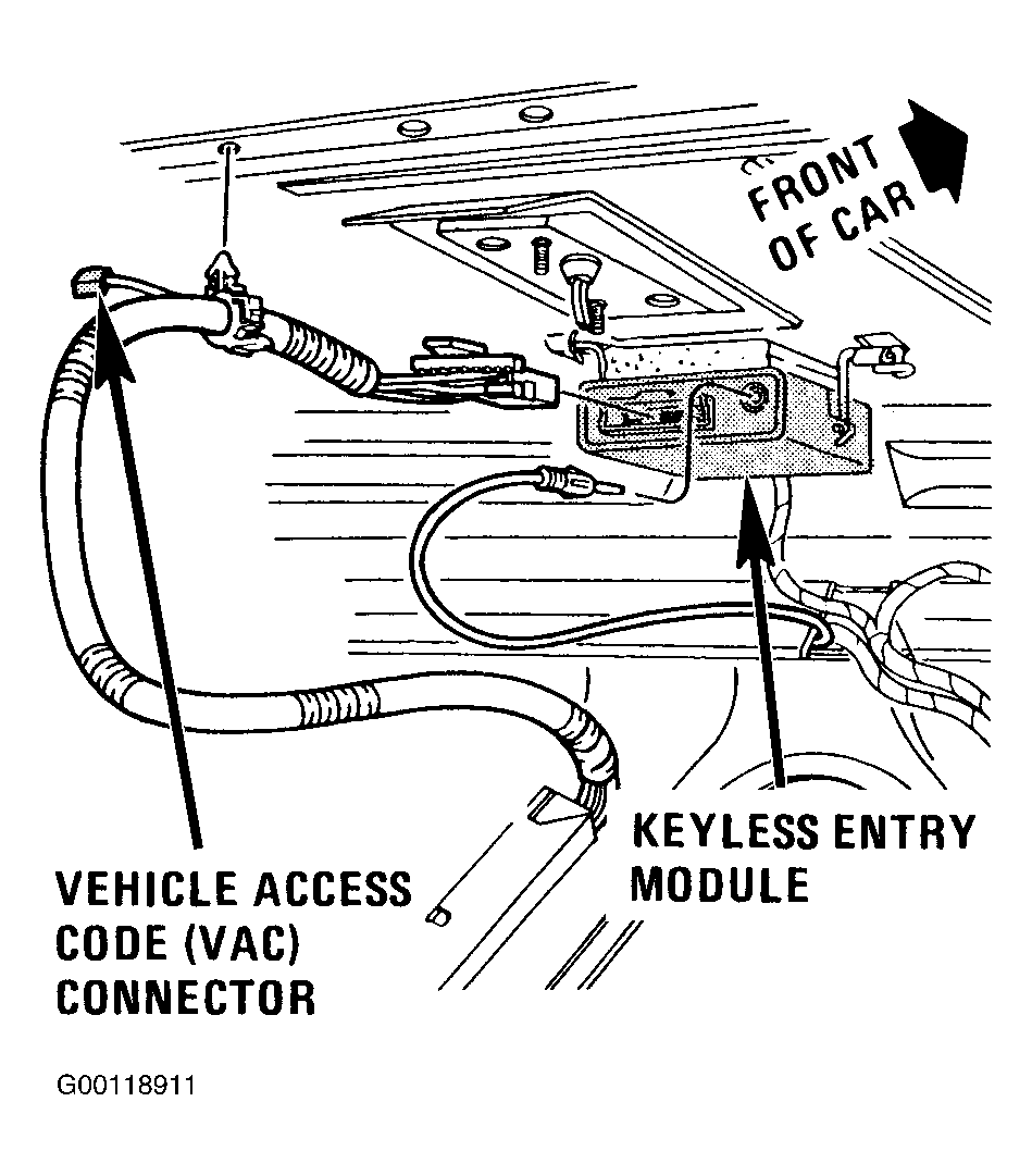- Ground Green single wire connector located at the RKE receiver module.See Figure .