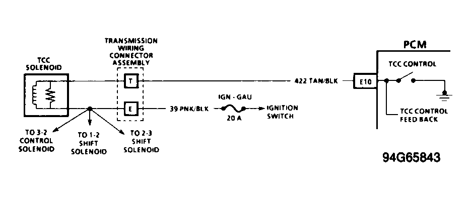 - Connect a test light to battery voltage. Touch TCC control driver terminal with test light. See Figure . Accelerate vehicle to 45 MPH and note test light. If test light does not illuminate, problem is a faulty ECM connector or ECM. On some models, lock-up signal may be checked at Data Link Connector (DLC) terminal "F" instead of at ECM terminal.