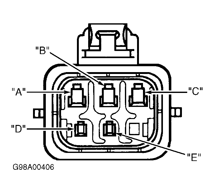 - Reconnect wiper switch connector. Disconnect wiper motor connector. Measure voltage between ground and wiper motor 5-pin connector terminal "D" (Dark Green wire). See Figure . If reading is less than one volt, replace wiper motor cover assembly. See WIPER MOTOR COVER (CIRCUIT BOARD) under REMOVAL & INSTALLATION. If reading is one volt or more, repair short to voltage in Dark Green wire between wiper motor and wiper/washer switch connector. See WIRING DIAGRAMS .