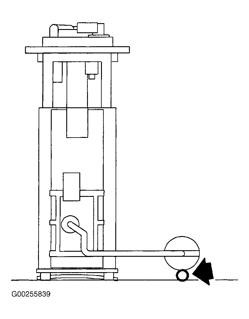 - If the float arm requires repositioning to meet the clearance specification, assure that any bending is performed at the 90° bend near the level sender. The short section of the float arm going into the level sender must be supported so that bending does not take place at the level sender. Carefully install the fuel pump module with sending unit in the fuel tank by orienting the float to face the right side of the tank, tilting the pump module approximately 45°, and loading the float arm and pump into the tank opening.
