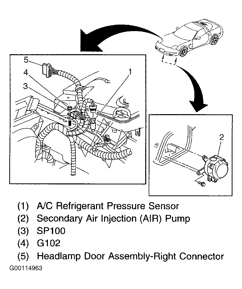 Fig 1: Locating A/C Pressure Switch & AIR Pump