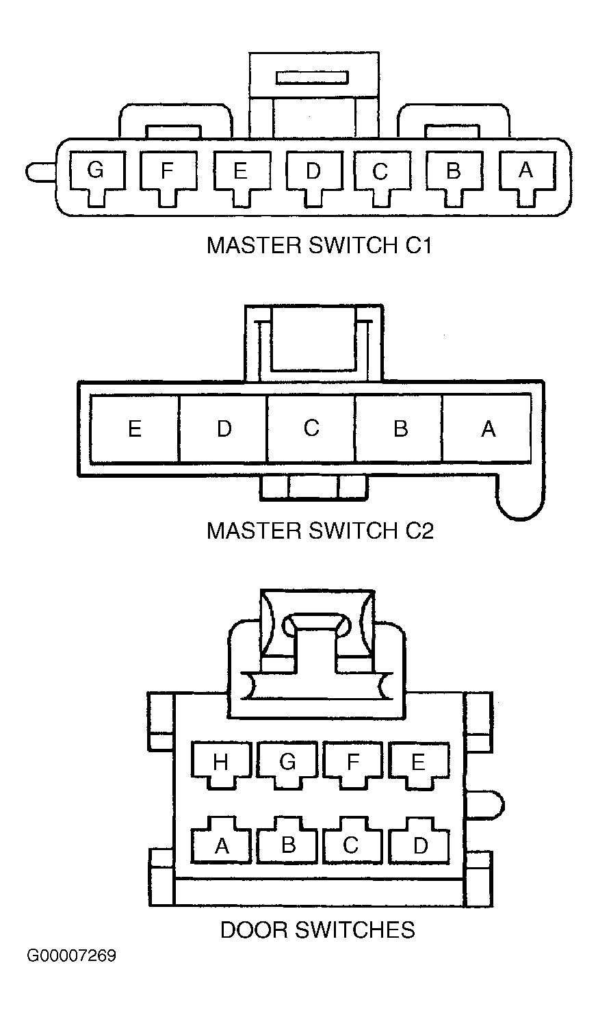 - Check for short to voltage in Dark Blue wire between 5-pin master switch harness connector C2 terminal "A" and other window switch harness connectors terminal "B". See WIRING DIAGRAMS . Repair as necessary. After repair, go to step 6 . If no problem is found, go to next step.