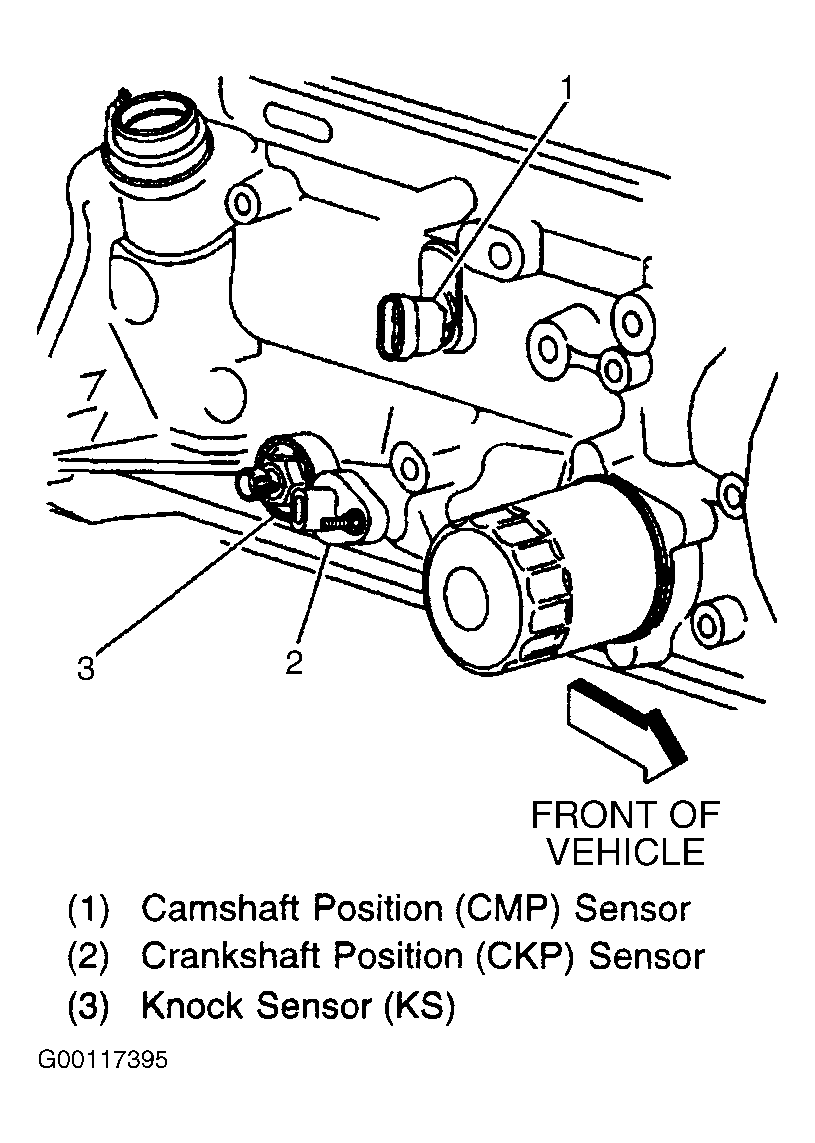 Fig 1: Locating Camshaft Position Sensor, Crankshaft Position Sensor & Knock Sensor