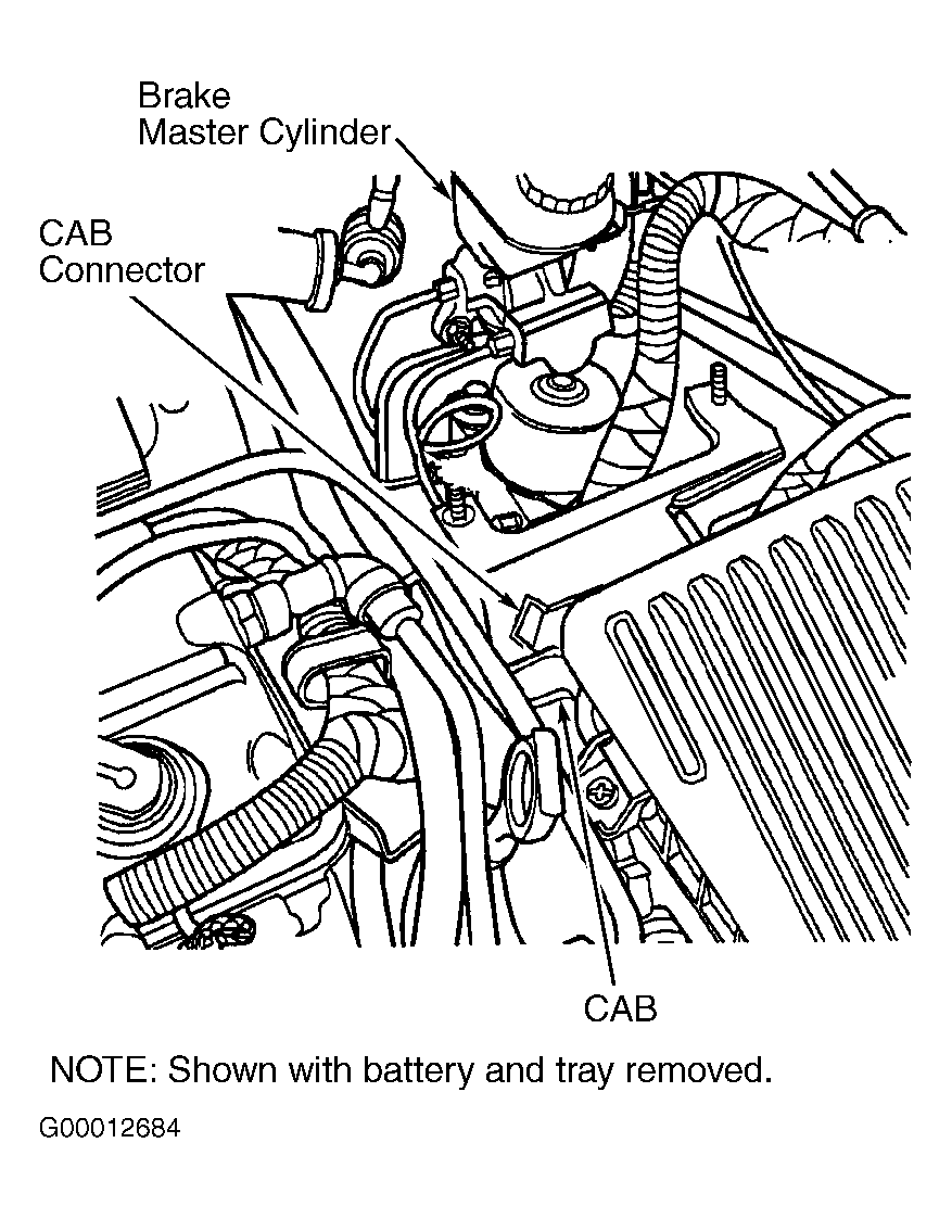 Controller Anti-Lock Brake (CAB) Module Left Side Of Engine Compartment, Under Battery Tray Fig 2