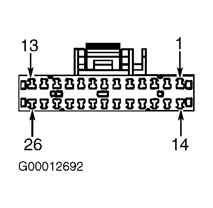 3. Disconnect RKE module connector. Using an ohmmeter, check resistance between ground and RKE module connector terminal No. 24, deck lid security switch sense circuit (Violet/Yellow wire). See Figure. If resistance is less than 10 ohms, leave RKE module connector disconnected and go to next step. If resistance is 10 ohms or more, leave RKE module connector disconnected and go to step  5.