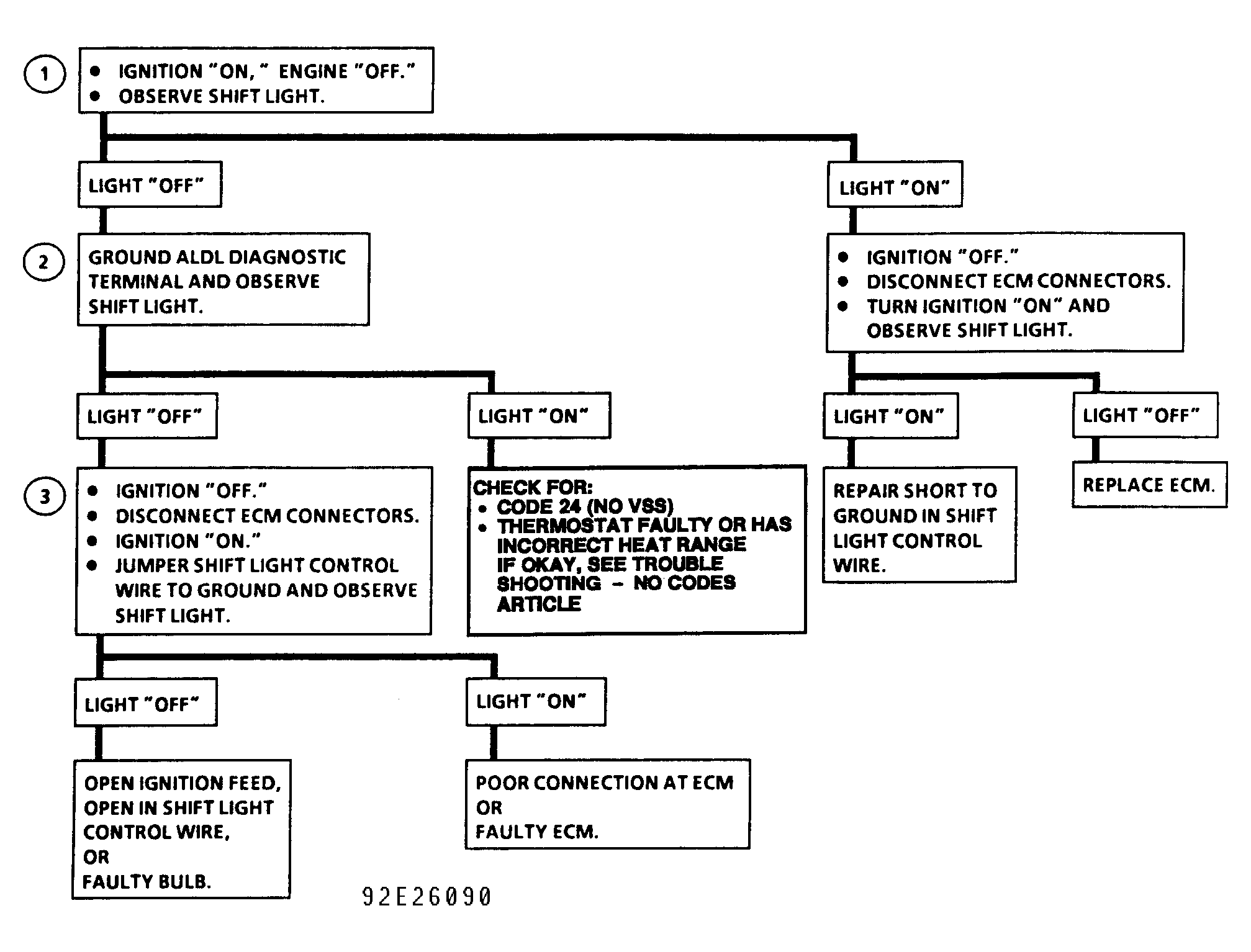 Use wiring diagram and DIAGNOSTIC CHART C-8B to diagnose shift light on manual transmission vehicles. See Figure and Figure .