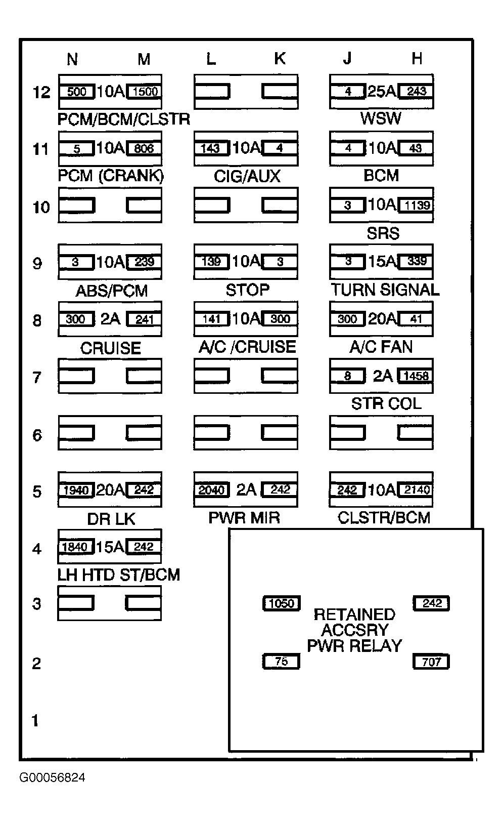 - Check open in circuit between RAP relay connector terminal No. 707 in left instrument panel fuse block and BCM Gray, 24-pin harness connector C2 terminal B9 (Black wire). Also, check for open in circuit between RAP relay connector terminal No. 1050 in left instrument panel fuse block and ground connector G201. See WIRING DIAGRAMS . Repair as necessary and go to step 10. If circuit is okay, go to step 7.