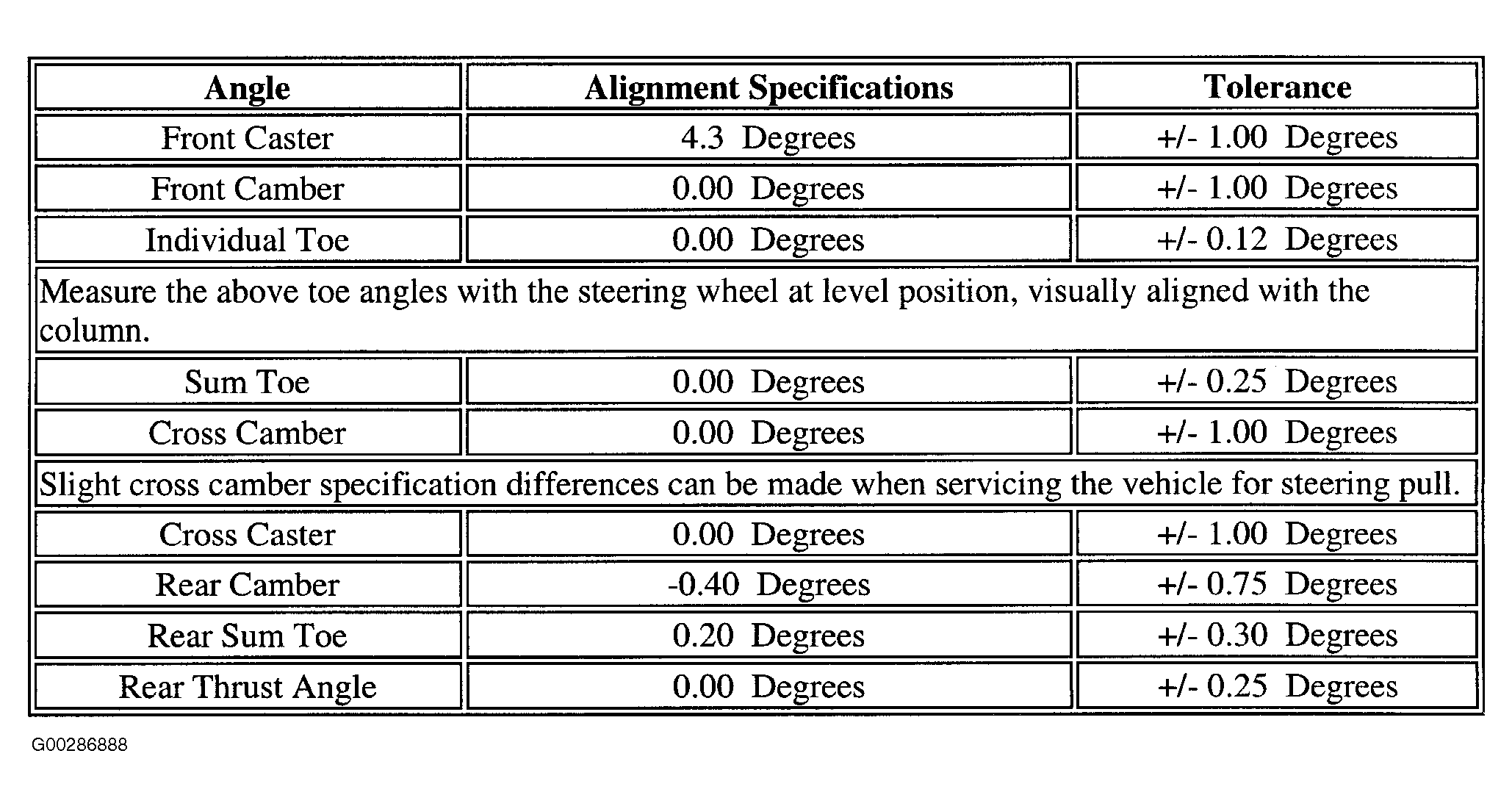 Wheel Alignment Specifications: Specifications