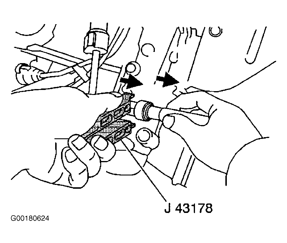 - Using the Fuel Line Disconnect Tool (J 43178), disconnect the quick connect coupling of the fuel feed hose from the fuel feed pipe of the fuel rail. See Figure . Use a shop towel to catch any remaining fuel that may leak.