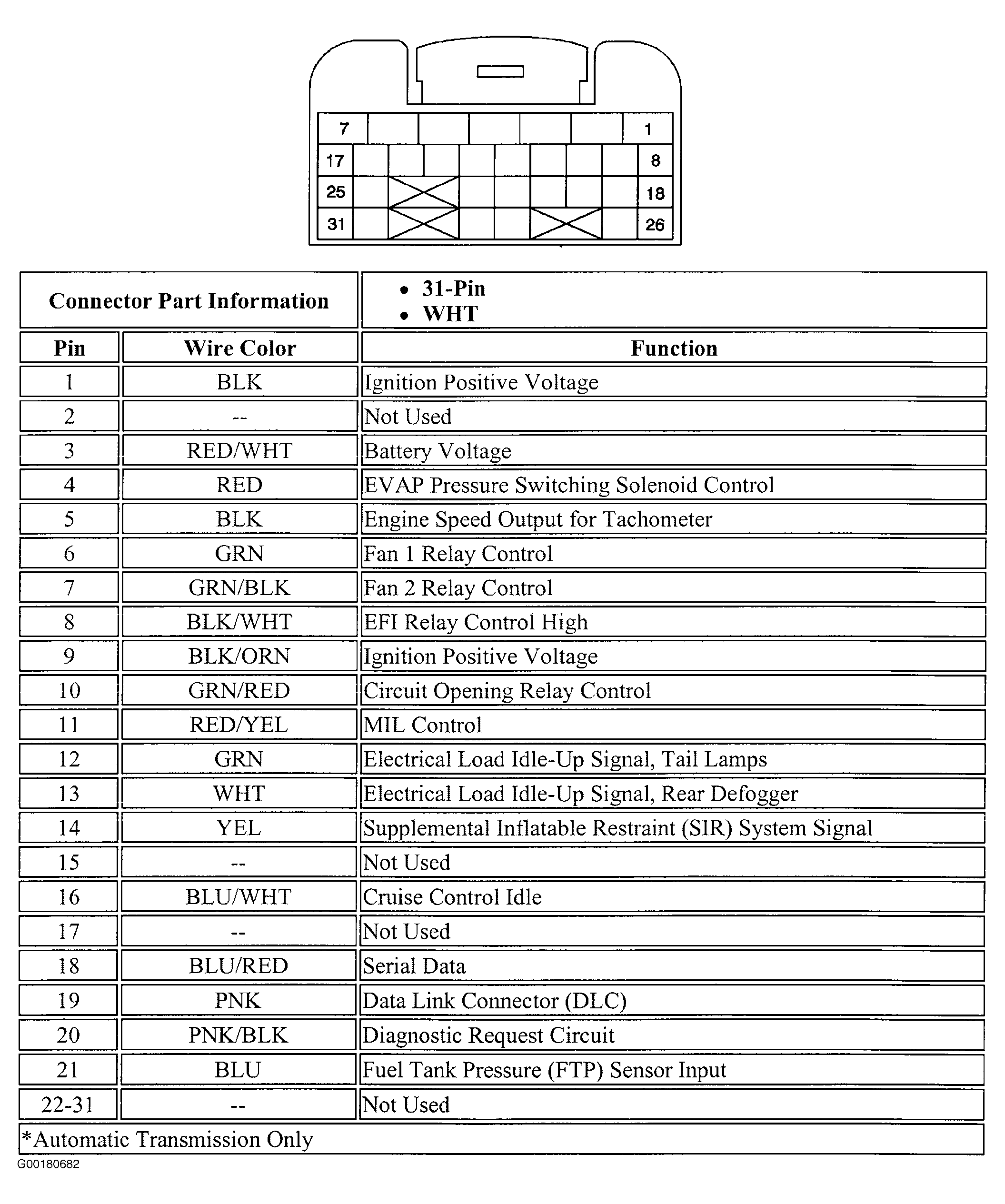 - Using DVOM, check for battery voltage between PCM continuous power terminal(s) and ground. For connector terminal identification, see Figure -Figure . To identify circuits, see WIRING DIAGRAMS . If battery voltage is not present, check for open fuse or fusible link. If fuse or fusible link is okay, check for open in circuit between PCM continuous power terminal and power source.