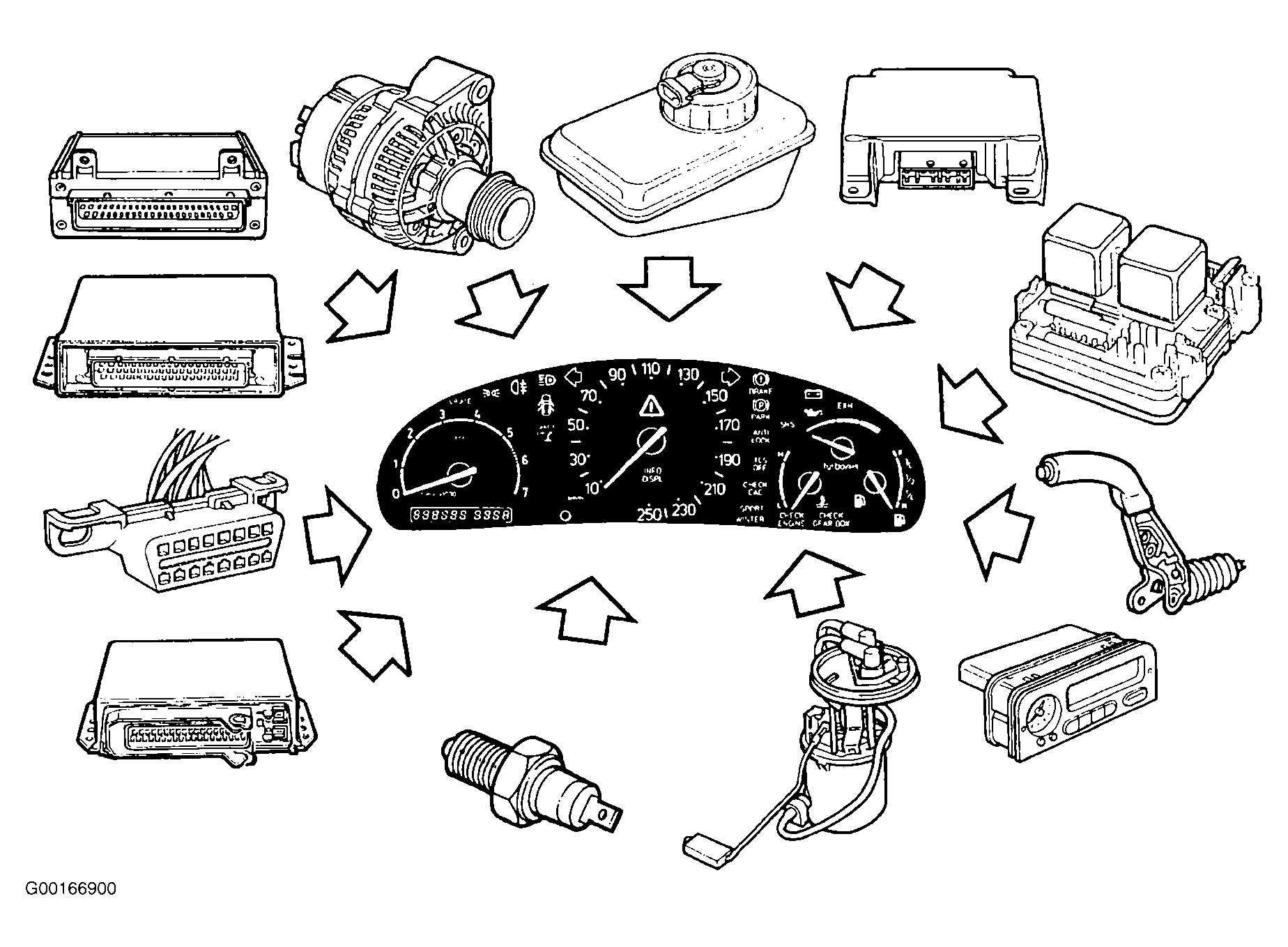 - Speed signal from the ABS electronic control module (pin 5). See Fig 1 .