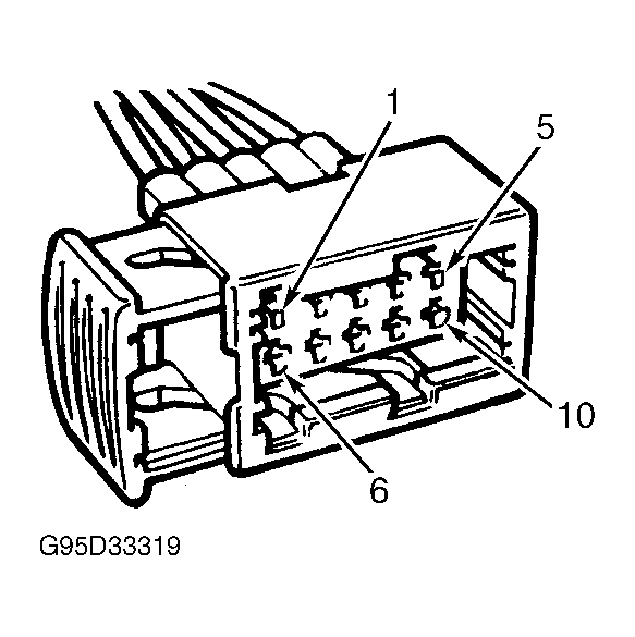 2. Connect test light between connector terminal No. 10 and ground. Using scan tool, activate one ignition coil. If test light comes on, go to next step. If test light does not come on, check main relay. See RELAYS in appropriate SYSTEM & COMPONENT TESTING article.