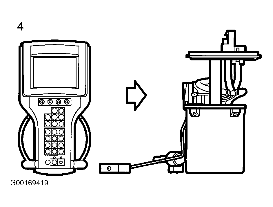 - Start the fuel pump with the diagnostic tool. See Fig 2