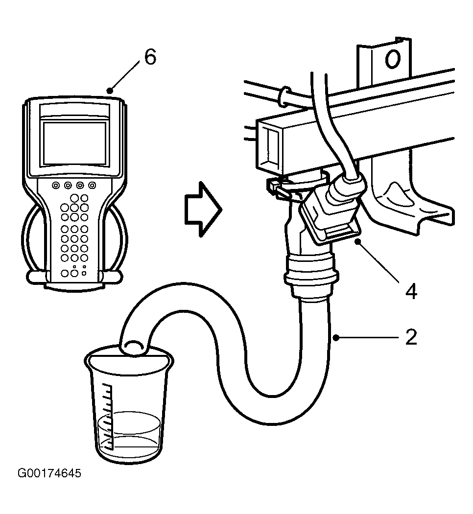 - Perform a flow capacity test with the diagnostic tool. The diagnostic tool then activates the injector concerned with battery voltage for exactly 30 seconds.