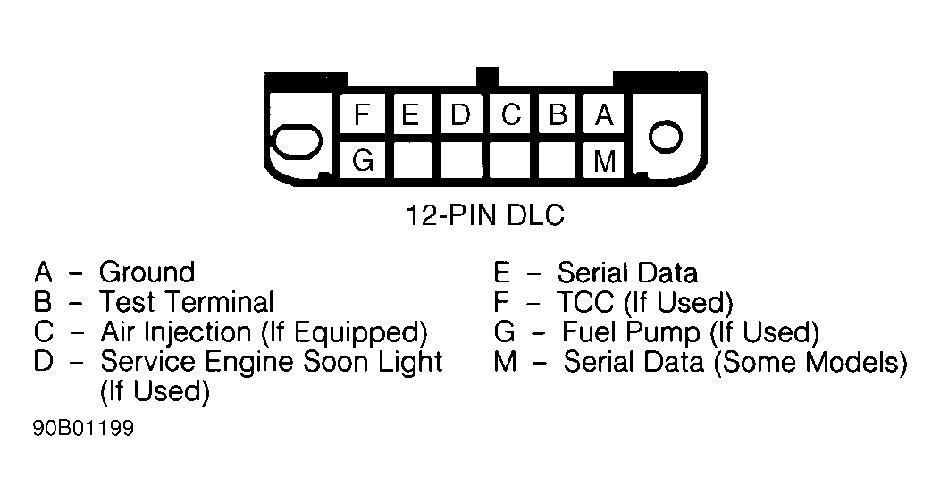 NOTE: Field service mode check can only be performed on vehicles equipped with 12-pin DLC with a wire present in test terminal "B". See DATA LINK CONNECTOR (DLC) TEST TERMINALS table.