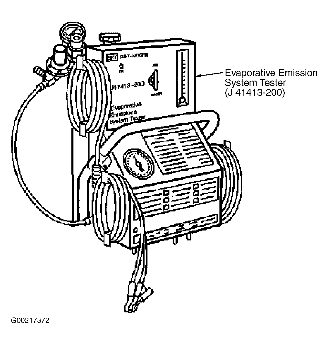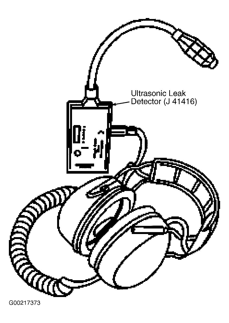 Evaporative Emissions System Tester (J-41413-200), Fuel Tank Cap Adapter (J-41415-40) and Ultrasonic Leak Detector (J-41416) are required to perform this procedure. See
