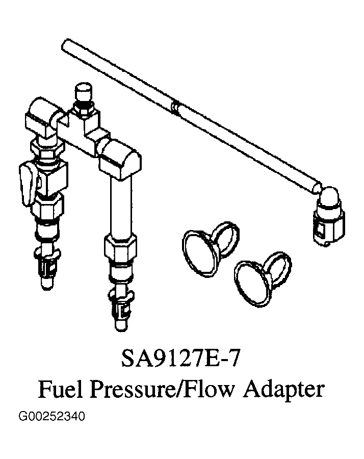 Gauge Bar Set (SA9127E) and Fuel Pressure/Flow Adapter (SA9127E-7) are required to perform this procedure. See Figure