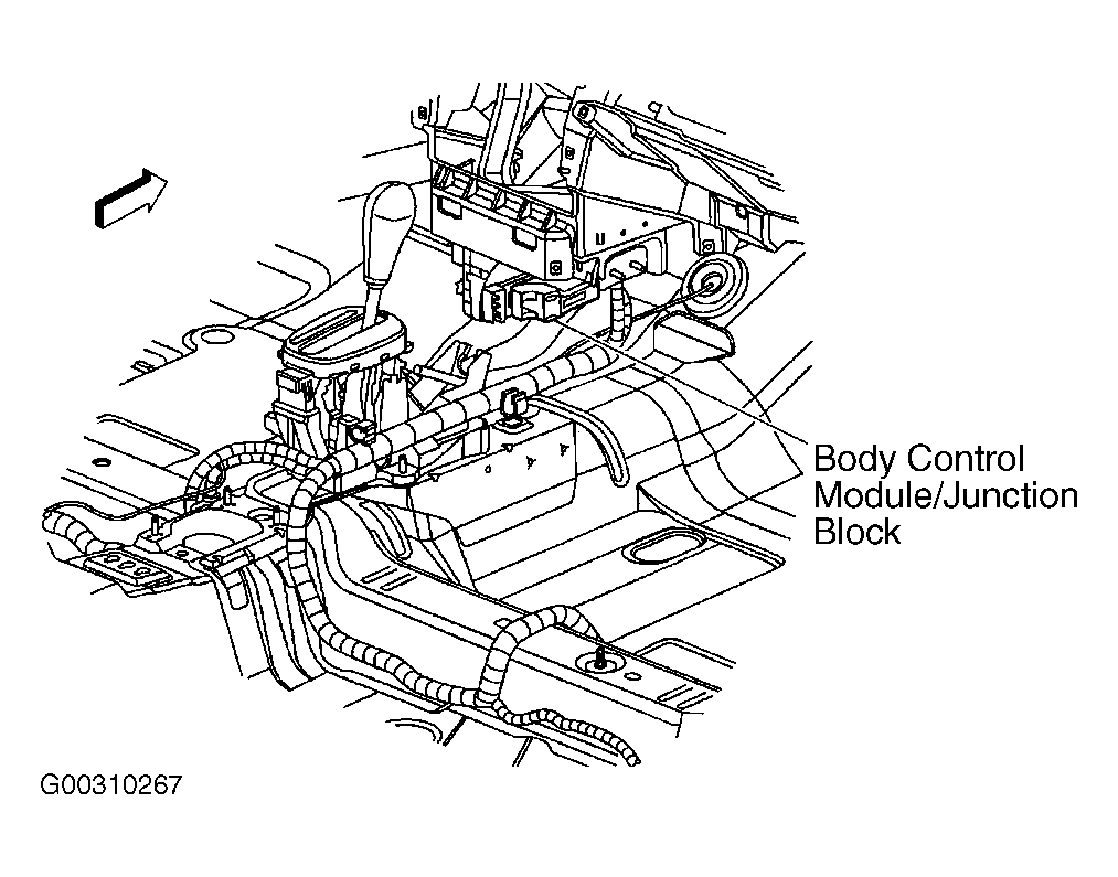 Body Control Module/Junction Block is located at lower center of instrument panel. See Fig 1.