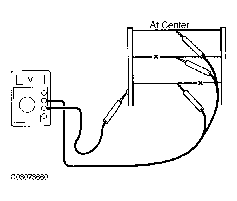 - Place the voltmeter's positive (+) lead against the defogger wire on the battery side.
