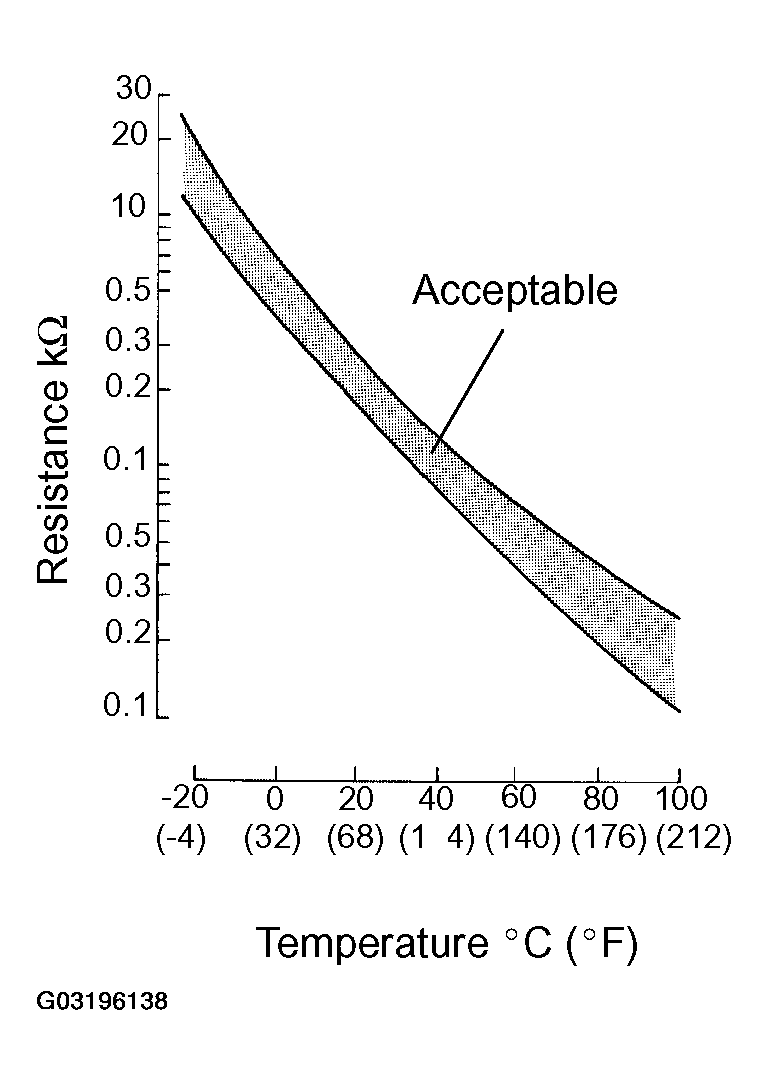 The Intake Air Temperature (IAT) sensor, mounted on the Mass Air Flow (MAF) meter, monitors the IAT. The IAT sensor has a built in thermistor with a resistance that varies according to the temperature of the intake air. When the IAT is low, the resistance of the thermistor increases. When the temperature is high, the resistance drops. These variations in resistance are transmitted to the ECM as voltage changes (see Fig 1)