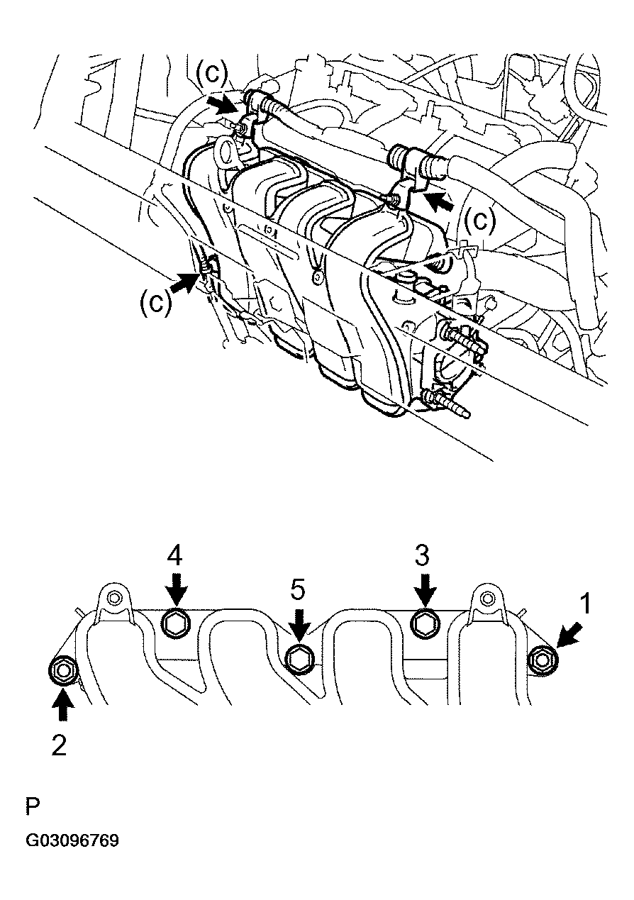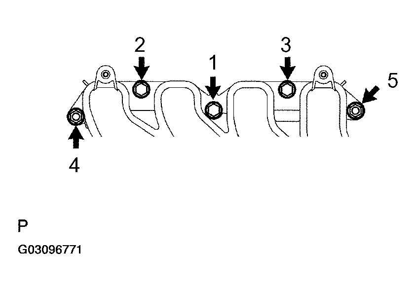 4. In order to remove the intake manifold, using several steps, remove the 3 bolts and 2 nuts in the sequence shown in Fig 5.