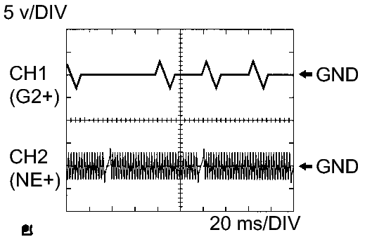 CH2: Between NE+ and NE-Tester Range 5 v/DIV, 20 ms/DIV Condition Idling HINT: