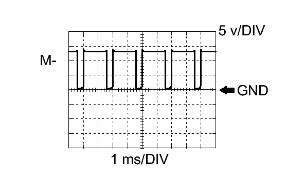 ECM Terminal Name Between M- and ME01 Tester Range 5 v/DIV, 1 ms/DIV Condition Idling with warm engine HINT: