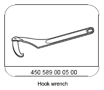 | 8 | Open latch (1) and remove | Installation: The markings (arrows) on the fuel tank (3) and on the locking ring (1) must be aligned with each other. Hook wrench |