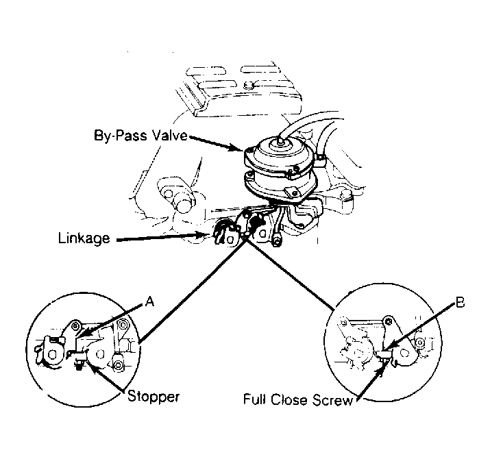 - Check by-pass valve shaft for binding, sticking and smooth movement. Ensure by-pass valve is in close contact with stopper when by-pass valve is fully open. Ensure by-pass valve is in close contact with full close screw when by-pass valve is fully closed. See Fig 1