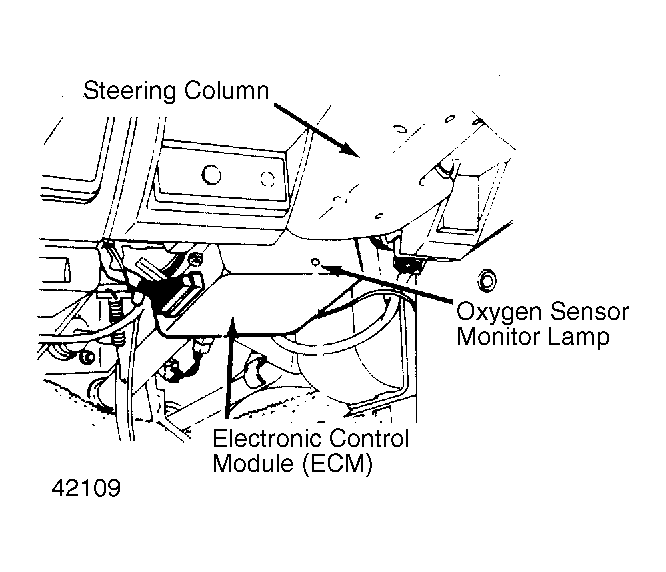 The ECM is located below the steering column in the passenger compartment. A small lamp (oxygen sensor monitor) is provided on the control module to assist in trouble shooting.