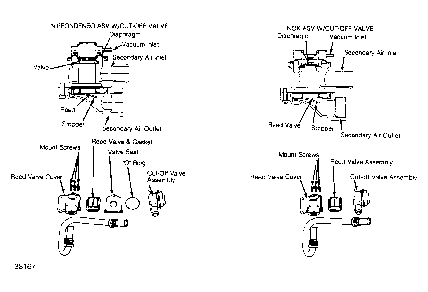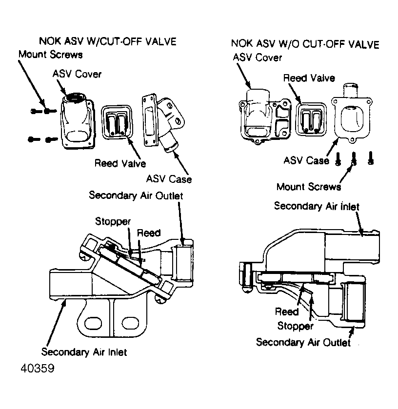 There are 2 types of air suction valves used with the air injection system. On all California models and Federal 2WD models, air suction valve(s) include a cut-off valve. Federal 4WD models use air suction valves without cut-off valve. See Fig 1 and Fig 2