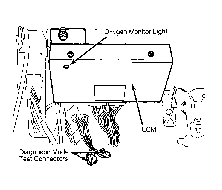 To read trouble codes, observe oxygen sensor monitor light. This light has two duration periods of illumination, one period long (1.2 seconds) and one period short (.3 seconds). The long period signifies the tens digit in a numbered code. Short period signifies the ones digit. Example: 3 long flashes and 5 short flashes, would signify a code 35.