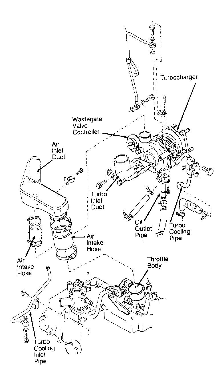 Home >> Subaru >> 1991 >> XT6 AWD, Automatic >> Repair and Diagnosis >> Engine Performance >> Remove, Overhaul & Install >> Engine Controls - Remove/Install/Overhaul >> Fuel System >> Turbocharger >> Removal & Installation